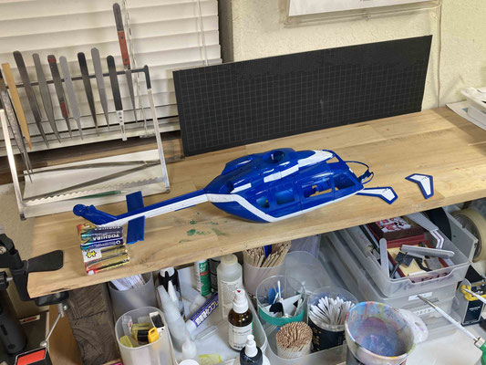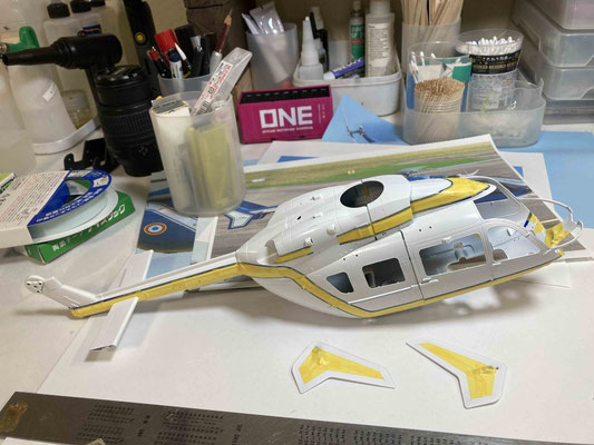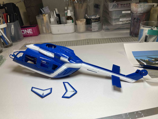 早速ヒロボーのEC145で製作を開始。シンプルな塗装ですが、塗装のライン取りが難しく一旦断念しました。
