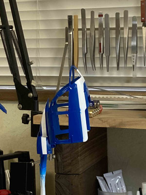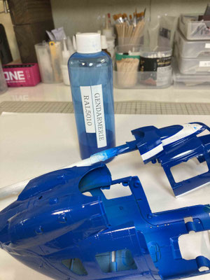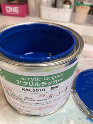 塗料も国内のペイントやさんに相談してラッカーでRAL5010を作って頂きました。