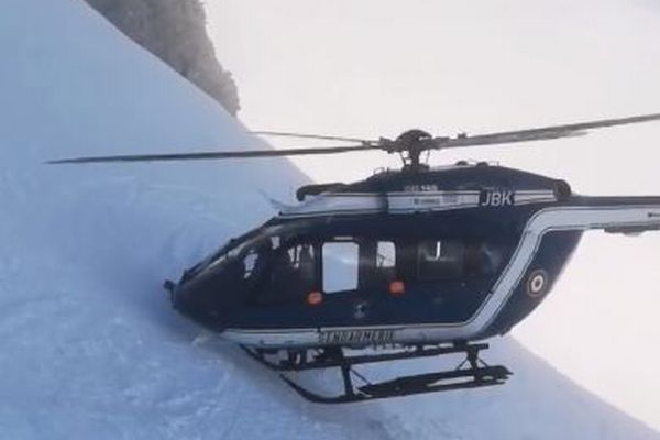 山の斜面にEC145のノーズを突っ込んでヘリを固定して遭難者を救助しています。